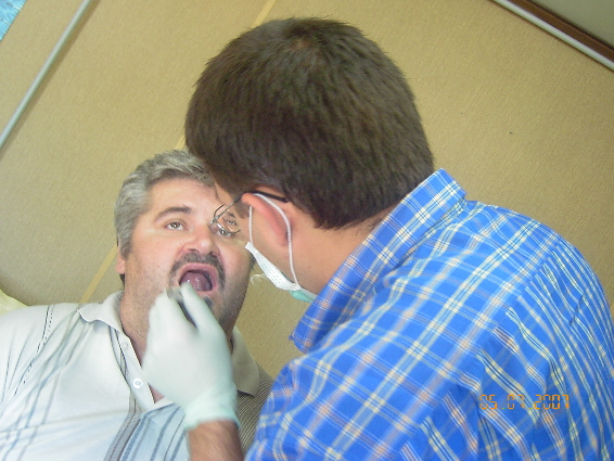 05/07 Iniziano le prime visite nei campi profughi con l’assistenza della sg.na Vedrana. Il primo campo è quello di Tasoucici al quale l’Esercitato Italiano ha regalato un’infermeria dove si sono svolte le visite. Tantissime sono state le cartelle compilate e altrettanto numerosi gli appuntamenti fissati per lo studio di Medjugorje. Dopo una breve pausa pranzo si è visitato il successivo campo di Domanovic. Anche lì ci aspettavano molti pazienti. Quello che più mi sembra di dover sottolineare è la gravità delle malattie dentali potute riscontrare come casi di bambini di dieci anni con carie destruenti su tutti i primi molari e gran parte degli incisivi oltre che sui decidui ancora in arcata. Una bellissima esperienza umana è stata inoltre l’ospitalità e l’accoglienza dei pazienti dei campi visitati. Infermeria del campo Tasoucici: la sg.na Vedrana assieme ad una nuova assistente