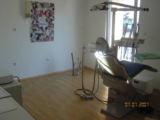07/07 Arrivano i primi pazienti a Medjugorje. Si sono effettuate prevalentemente pulizie più o meno profonde. Tuttavia fatta la prima carie si rompe l’aspiratore. Non si è più abituati a lavorare senza, ma è possibile. Infatti il dott. Roberto Araceli ci dice come fare; comunque lui contatterà dall’Italia più tardi un tecnico di Sarajevo per la riparazione Lo studio pulito e ordinato, pronto per accogliere i primi pazienti